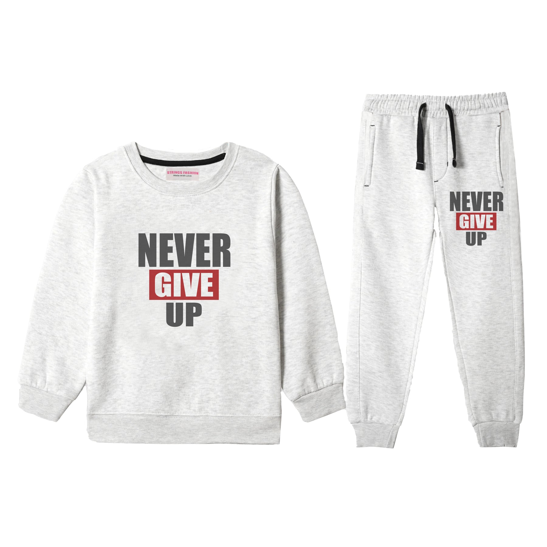 The NEVER GIVE UP Junior Girls Oatmeal Color Track Suit combines comfort and style in a versatile set designed for active young girls. Crafted in a soft oatmeal shade, this track suit offers cozy warmth and freedom of movement, ideal for sports or casual wear. Its durable fabric ensures long-lasting use while the motivational "Never Give Up" theme inspires confidence and perseverance. Perfect for everyday activities, this track suit balances performance and fashion seamlessly.