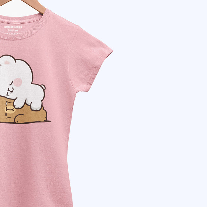 This digitally printed girls' T-shirt in a vibrant tickled pink shade combines style and comfort with 100% pure cotton fabric. Designed for juniors, it offers a soft, breathable feel ideal for everyday wear, while the milk and mocha-inspired print adds a playful, trendy touch to any casual outfit. Durable and easy to care for, this T-shirt is a smart choice for young fashion enthusiasts.