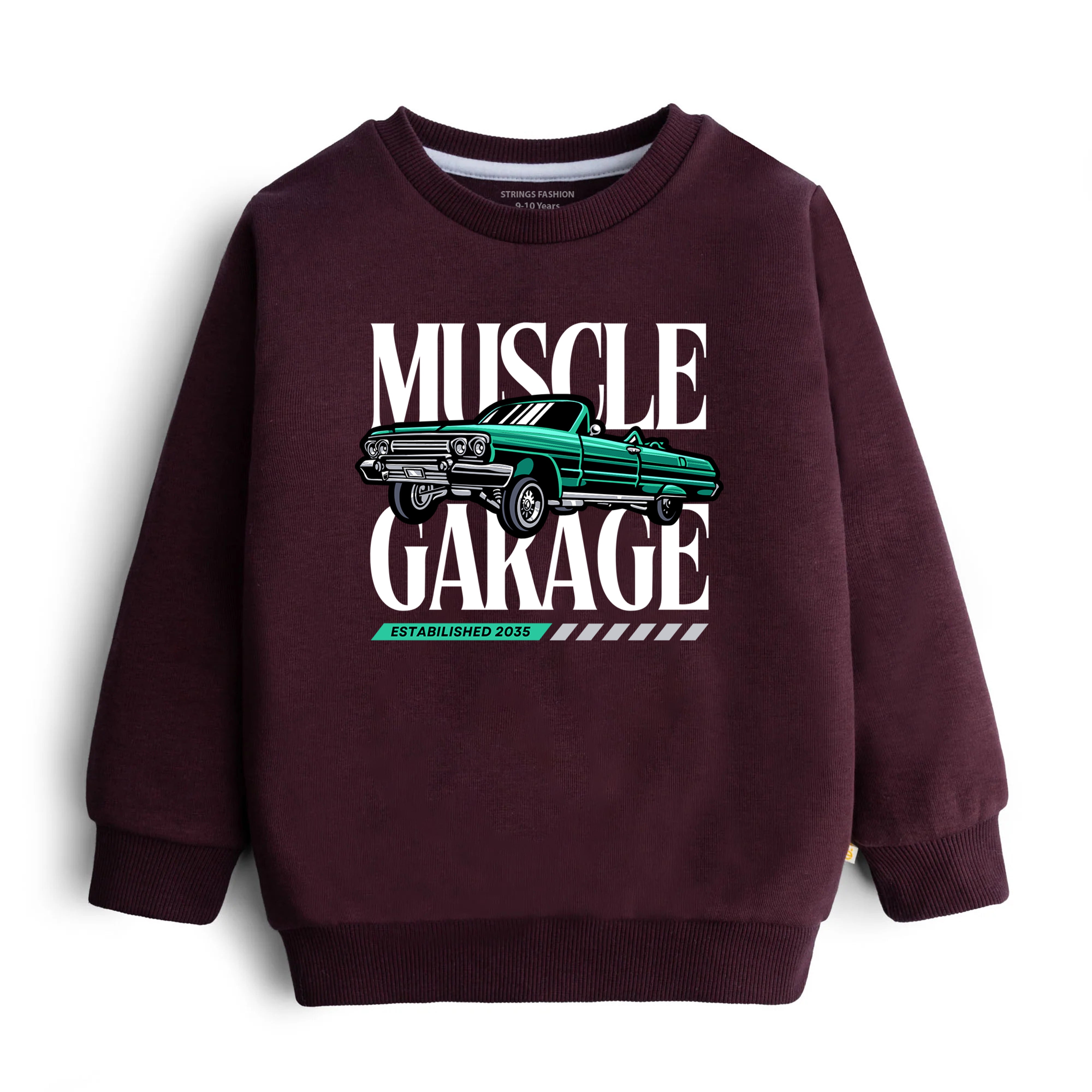 DIGITAL MUSCLE GARAGE PRINTED Maroon Color Boys Long Sleeve Sweat-Shirt