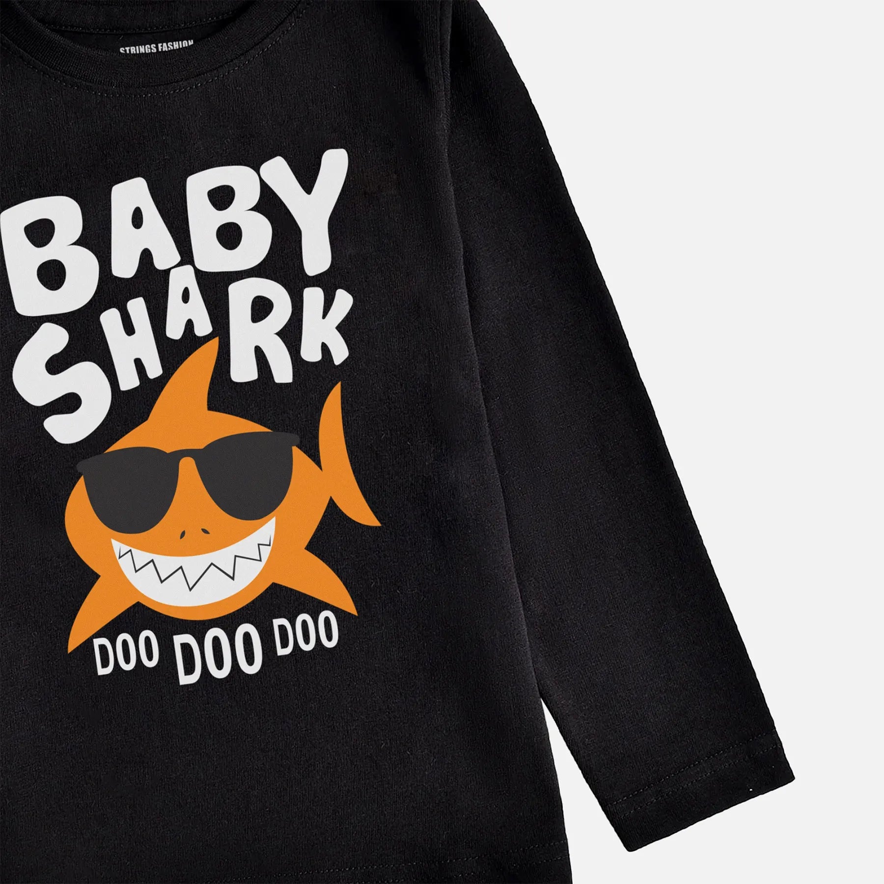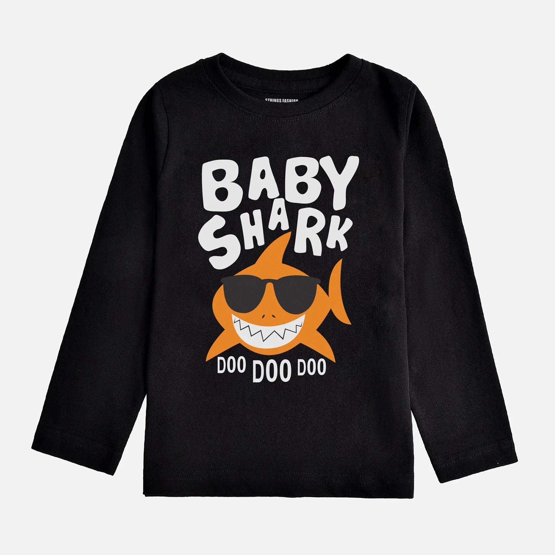 This boys' long sleeve T-shirt features a digital printed Baby Shark design on jet black, 100% cotton fabric. Its breathable cotton material ensures comfort and durability, making it ideal for everyday wear. The long sleeves provide added warmth, perfect for cooler days while maintaining a stylish look for young boys.