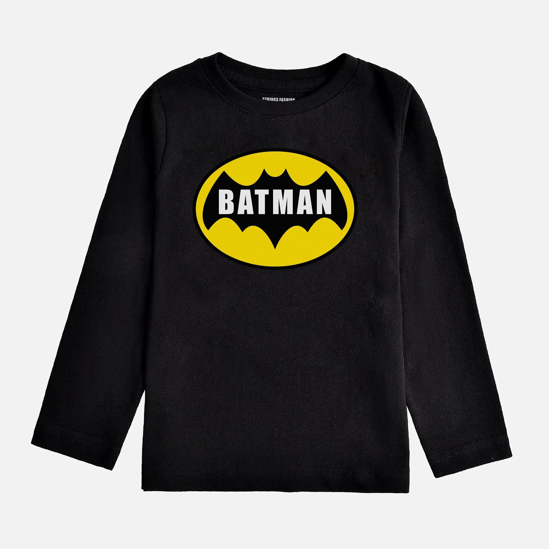 This boys' long sleeve T-shirt features a digital printed Batman design on jet black, 100% cotton fabric. Crafted for comfort and durability, it offers a soft touch and breathability ideal for everyday wear. The classic black color and iconic print make it a stylish choice for young fans seeking both quality and character-inspired fashion.