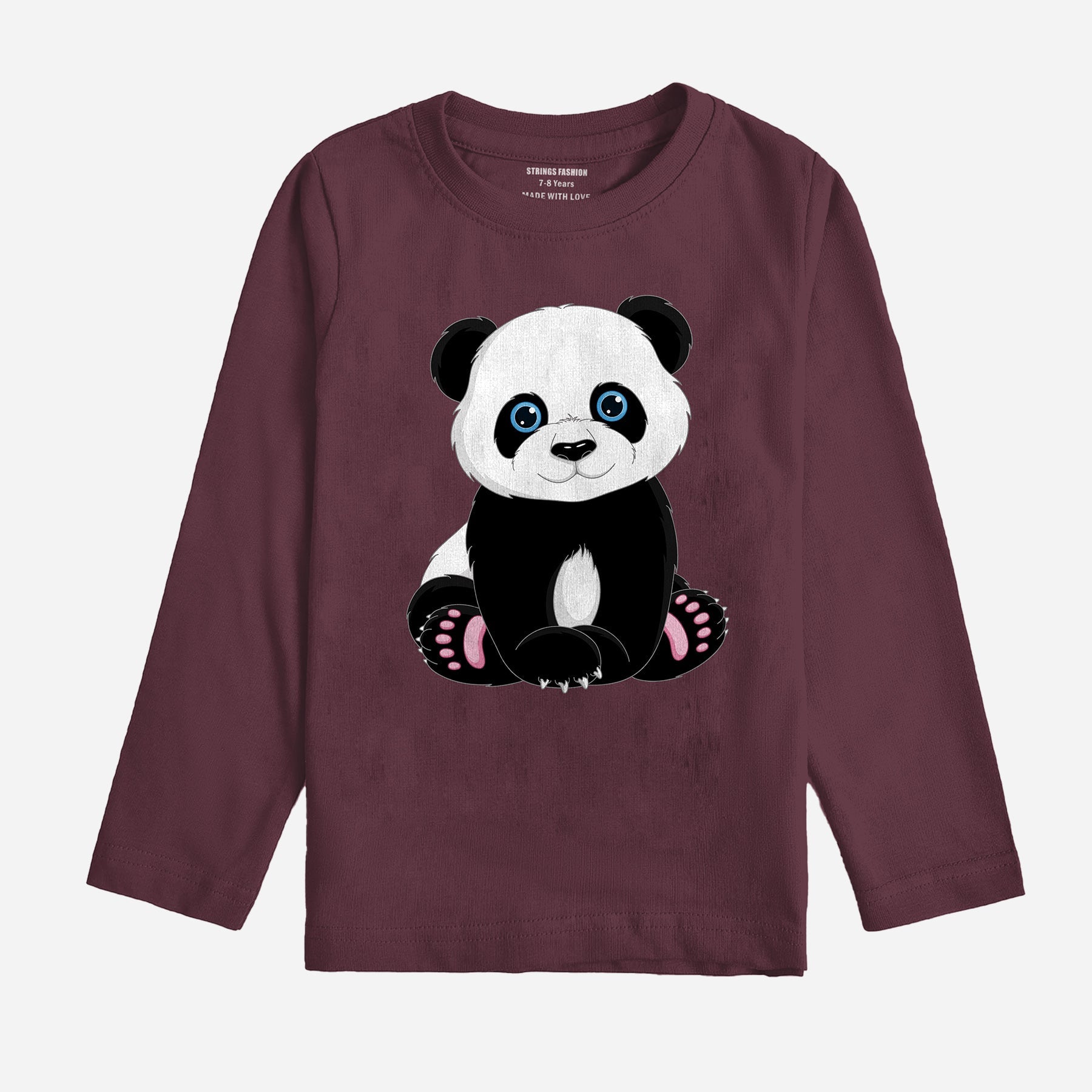 This burgundy long sleeve T-shirt for boys is crafted from 100% cotton, ensuring softness and breathability for all-day comfort. Featuring a digital printed cute panda design, it combines playful style with durable fabric, making it ideal for active juniors. The natural cotton material supports sensitive skin, while the long sleeves provide added warmth during cooler days. Perfect for casual wear, this T-shirt balances fun aesthetics with practical comfort.