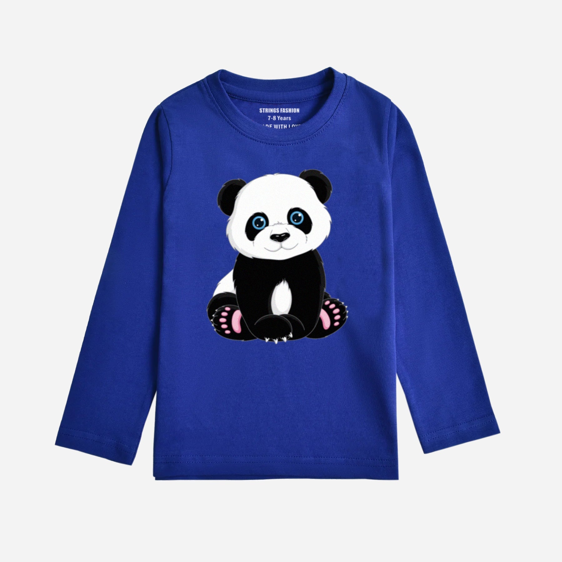 This navy long sleeve T-shirt for boys is crafted from 100% cotton, ensuring softness and breathability for all-day comfort. Featuring a digital print of a cute panda, it combines playful style with durable fabric, making it ideal for active juniors. The long sleeves provide extra coverage, perfect for cooler days or layering.