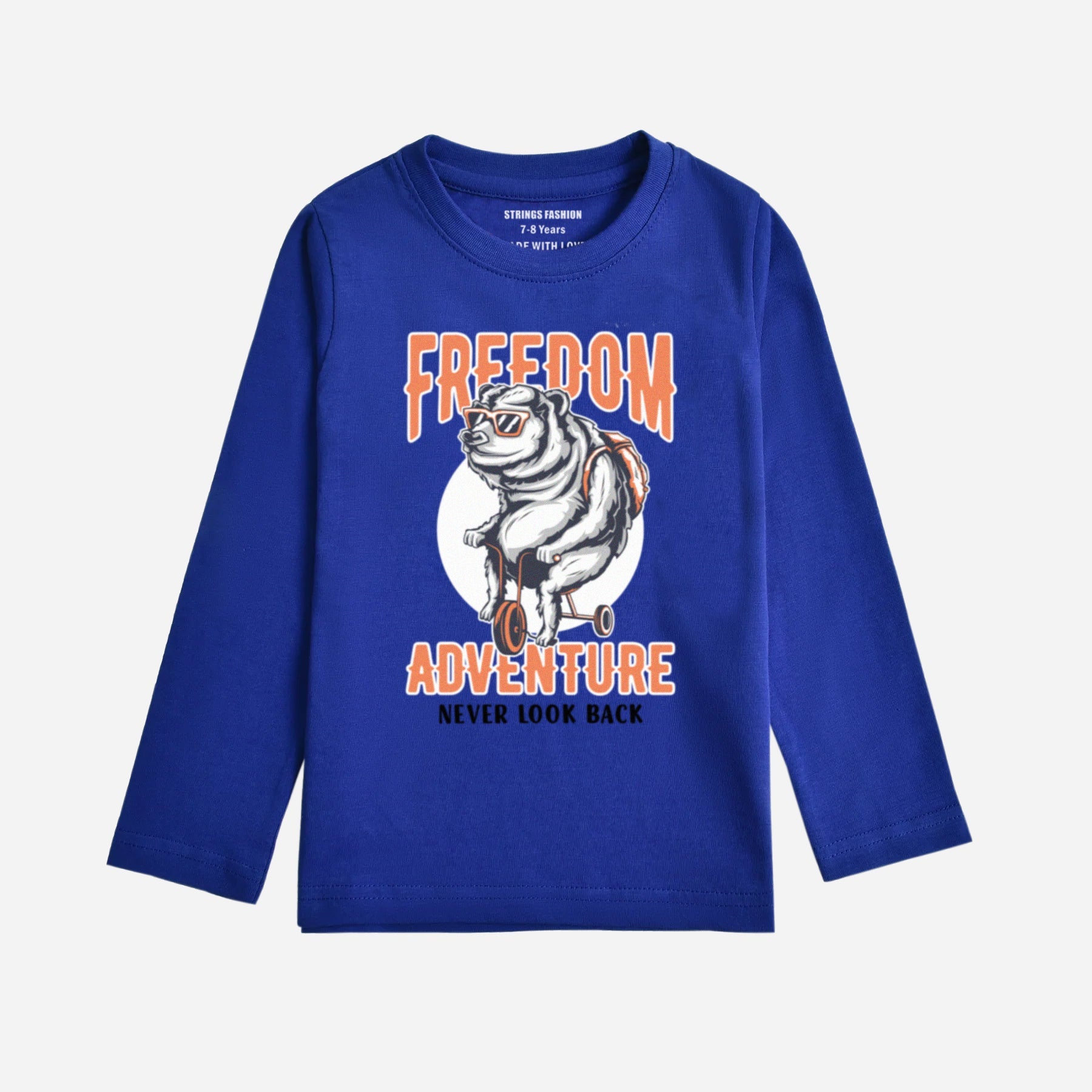 Crafted from 100% cotton, this navy long sleeve T-shirt offers comfort and durability for active boys. Its digital print adds a vibrant, adventurous touch, making it ideal for everyday wear. The breathable fabric ensures all-day comfort, while the classic fit allows easy movement during play or casual outings. Perfect for young explorers who value both style and practicality.