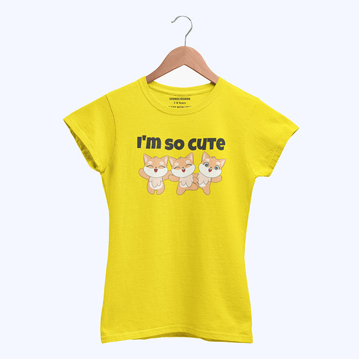 This junior girls' T-shirt in vibrant canary yellow is crafted from 100% cotton, ensuring breathability and comfort throughout the day. Featuring a high-quality digital print with the playful "I’m Cute" design, it combines style with durability. Ideal for casual wear, this T-shirt offers a soft touch and easy maintenance, making it a practical and fashionable choice for young girls.