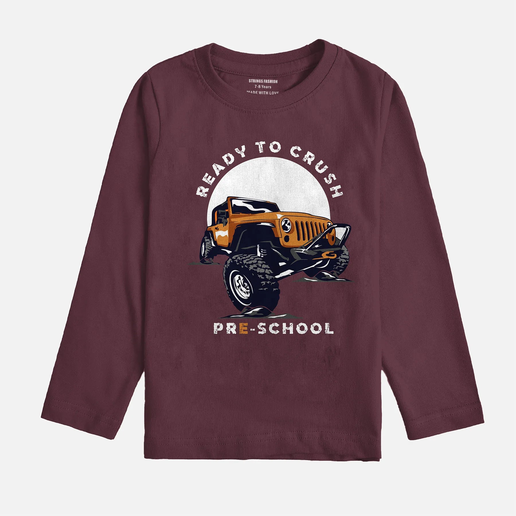This burgundy boys' long sleeve T-shirt is crafted from 100% cotton, ensuring softness and breathability for all-day comfort. Featuring a durable design, it is ideal for active children who need reliable, comfortable clothing. The rich burgundy color adds a stylish touch, making it a versatile addition to any young boy’s wardrobe. Perfect for layering or wearing alone, this T-shirt combines quality fabric with practical design.