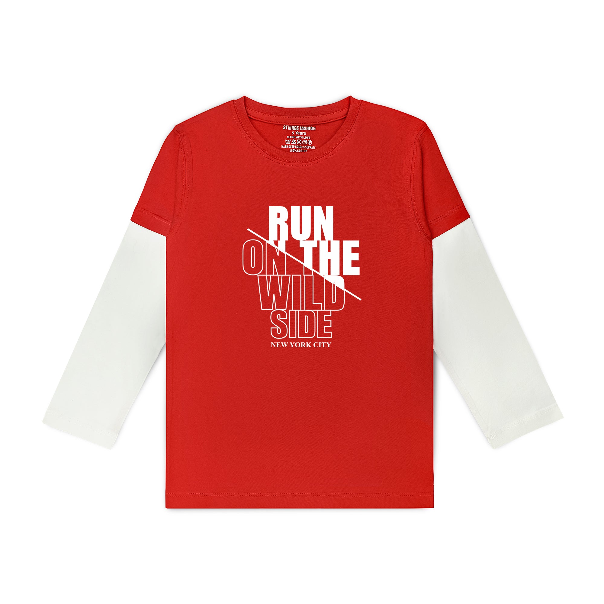 This boys' long sleeve t-shirt features a striking white base with bold red accents on the arms, combining style and comfort for active wear. Crafted for durability and ease of movement, it’s ideal for energetic kids who want to run on the wild side while staying comfortably dressed. The design balances vibrant color with practical long sleeves, making it suitable for various casual occasions and cooler weather.