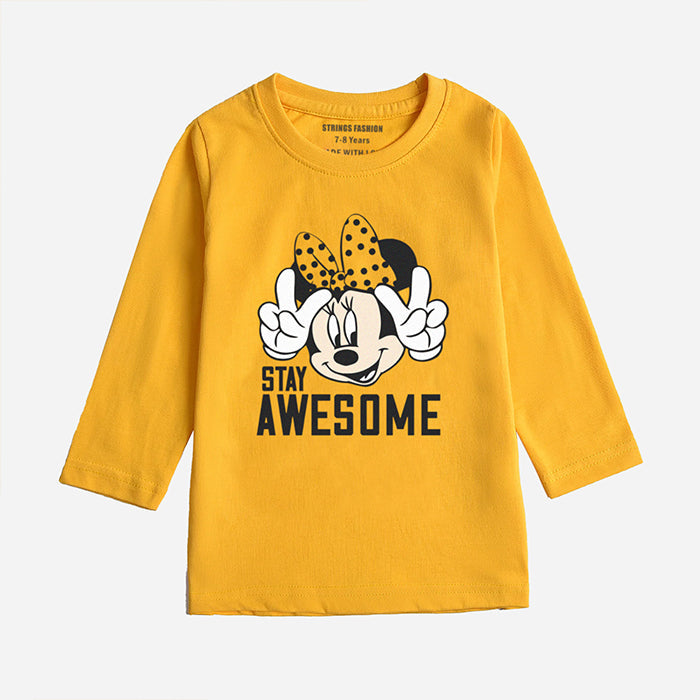This digital printed girls' long sleeve T-shirt in vibrant canary yellow is crafted from 100% cotton, ensuring breathability and comfort. Its durable fabric and expert stitching make it ideal for active wear, while the bold "Stay Awesome" print adds a stylish, confident touch to any young wardrobe. Perfect for layering or wearing alone, this T-shirt combines quality and design for everyday use.