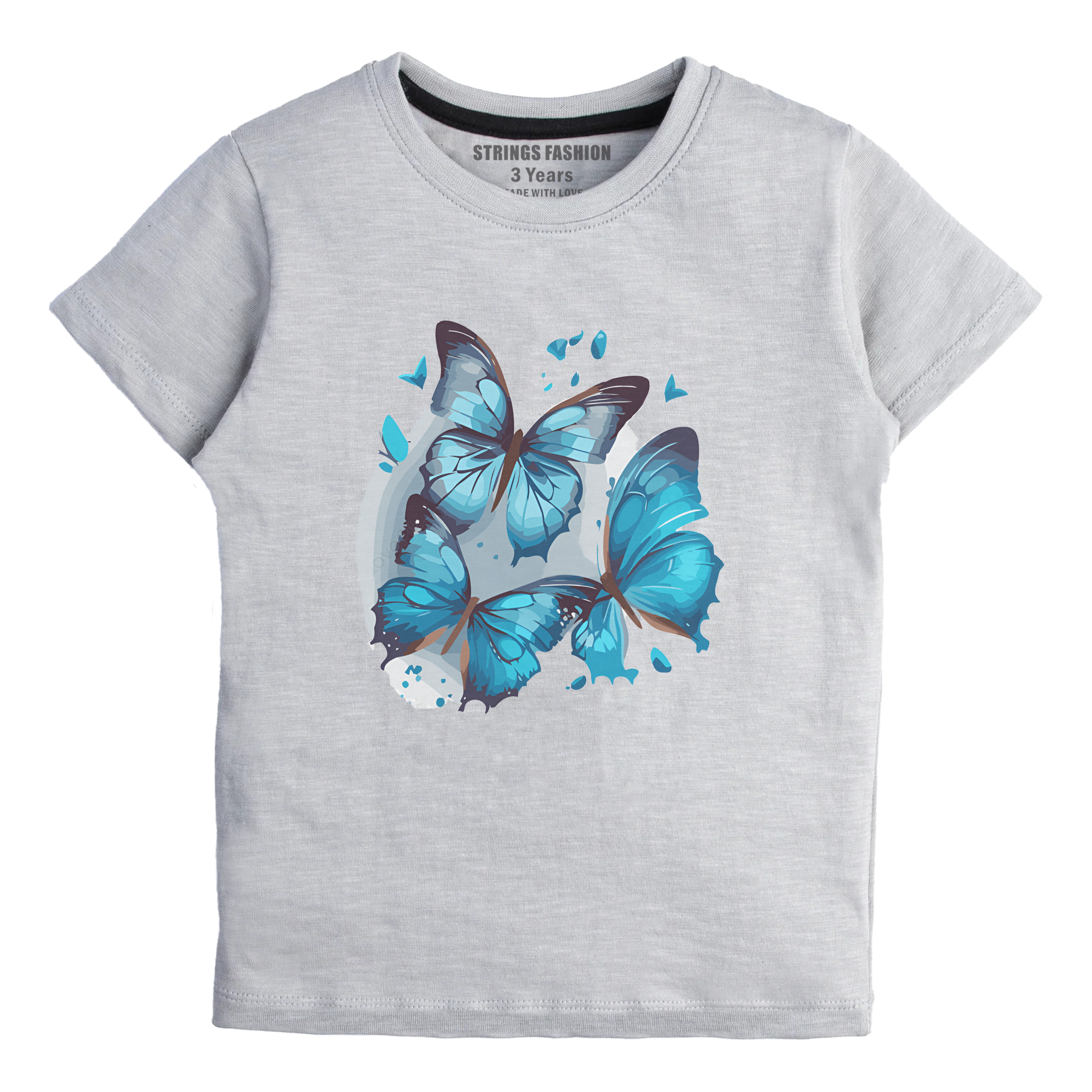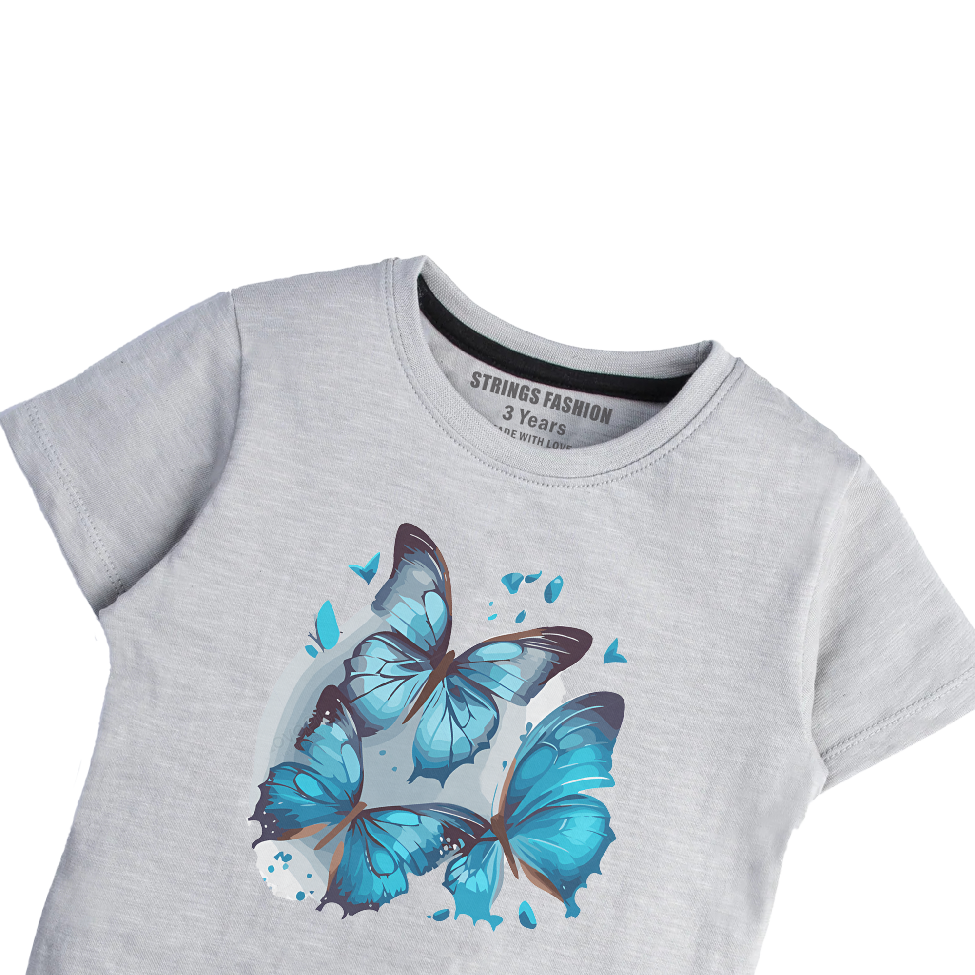 This grey T-shirt features a delicate blue butterfly print, designed specifically for girls who appreciate subtle yet stylish details. Crafted for comfort and everyday wear, it combines a soft fabric with a timeless design, making it a versatile addition to any wardrobe. Ideal for casual outings, this shirt offers both style and ease, reflecting expert attention to quality and aesthetic balance.