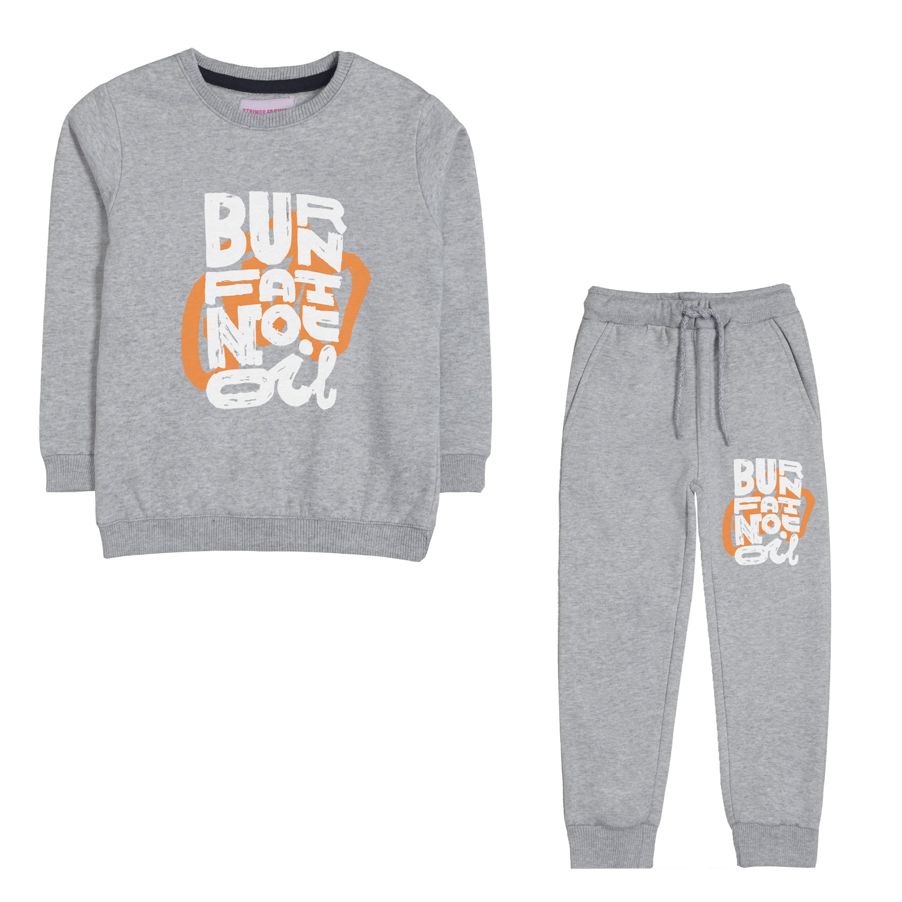 Designed for active junior boys, the BURN FOR FAT Grey Header Track Suit offers a comfortable and durable fit ideal for sports and casual wear. Its breathable fabric ensures moisture-wicking to keep him dry during workouts, while the stylish grey header design adds a modern touch. This track suit supports freedom of movement and long-lasting wear, making it an excellent choice for young athletes focused on performance and comfort.