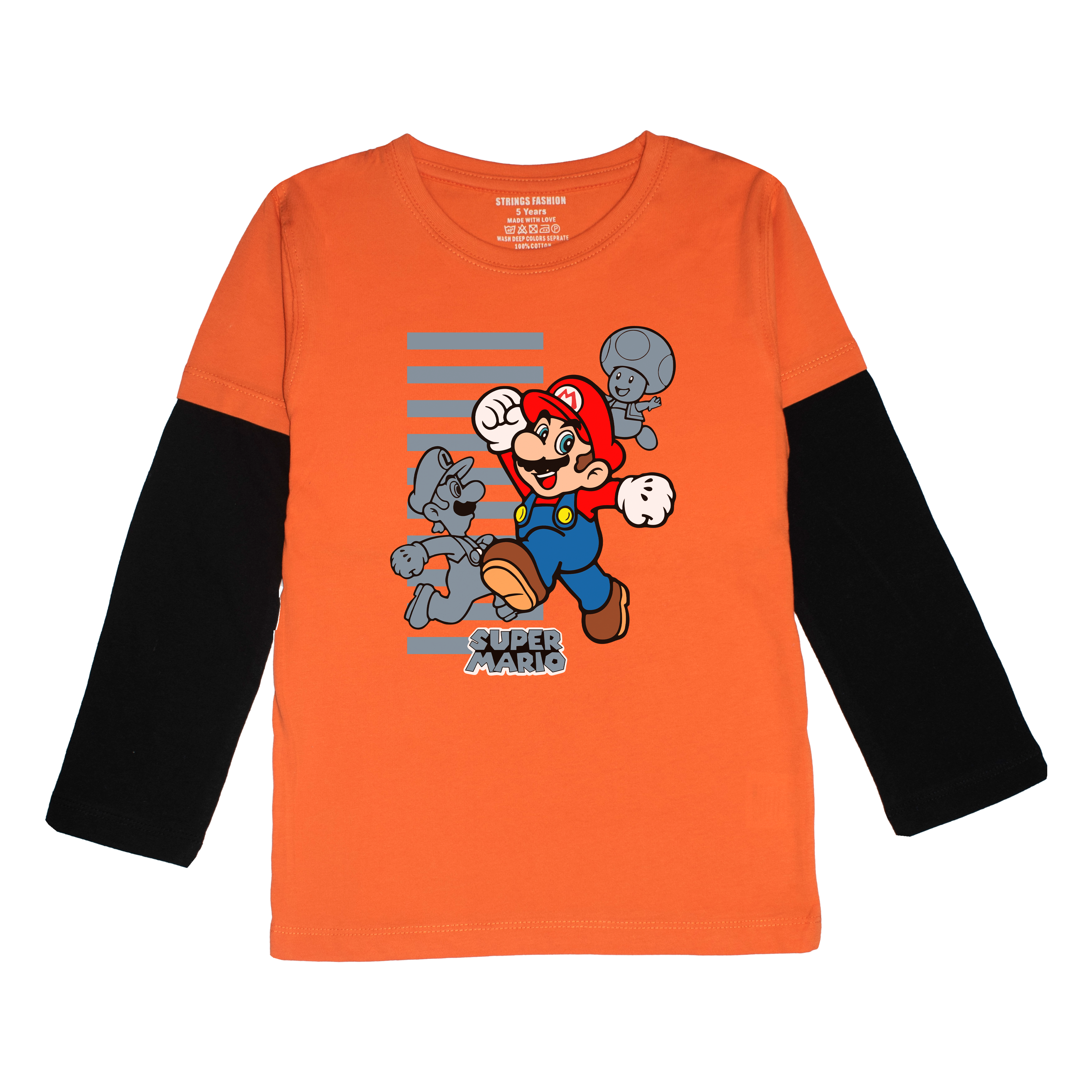 MARIO BROS PRINTED ORANGE-BLACK BOYS LONG SLEEVE T.SHIRT