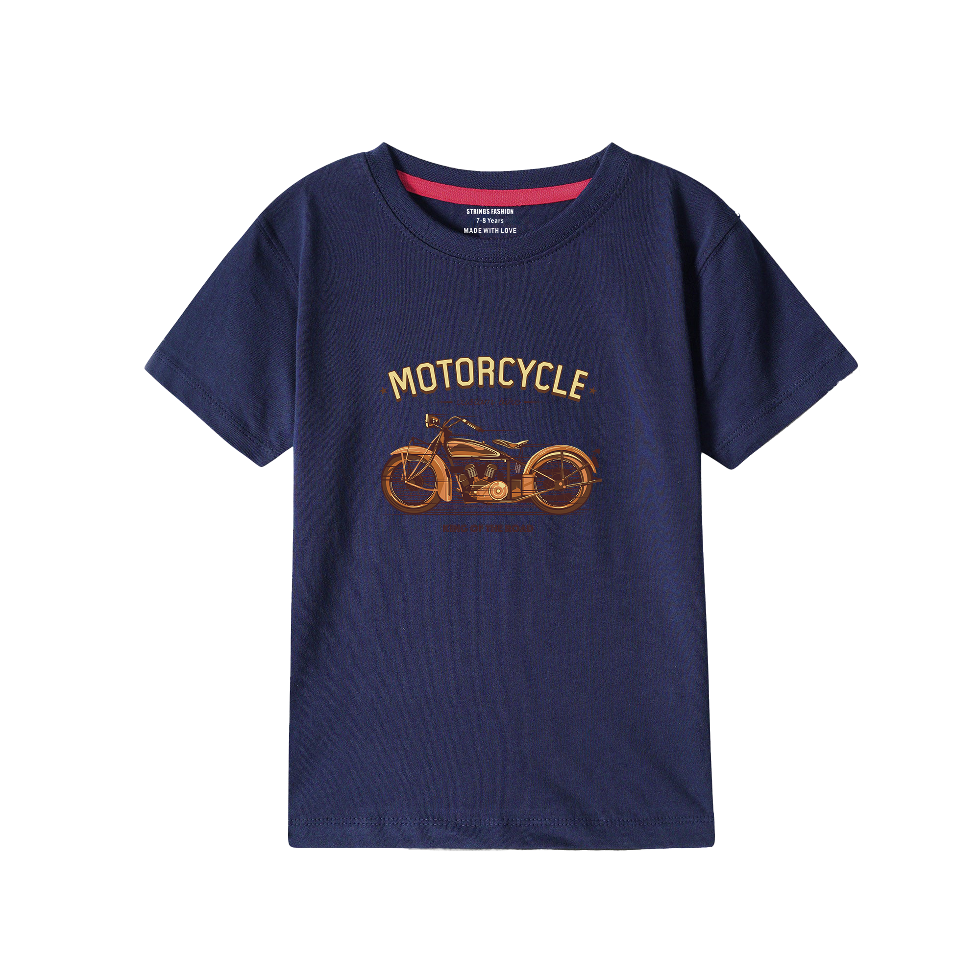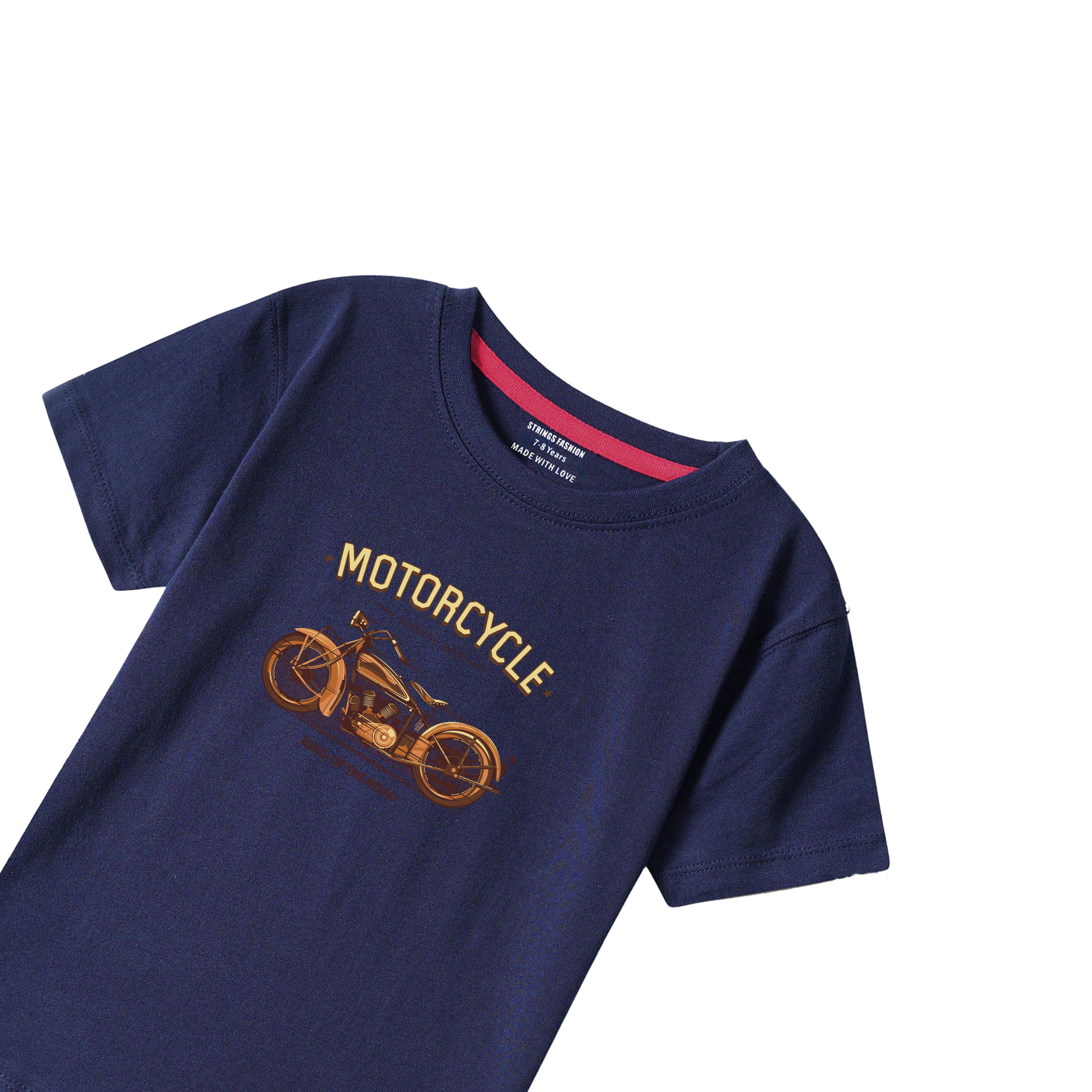 This navy printed boys' T-shirt combines comfort and style, crafted from soft, breathable fabric ideal for active wear. Its durable print adds a bold, motorcycle-inspired design that appeals to young enthusiasts. Perfect for everyday use, this T-shirt offers a reliable fit and easy care, making it a practical addition to any boy’s wardrobe.