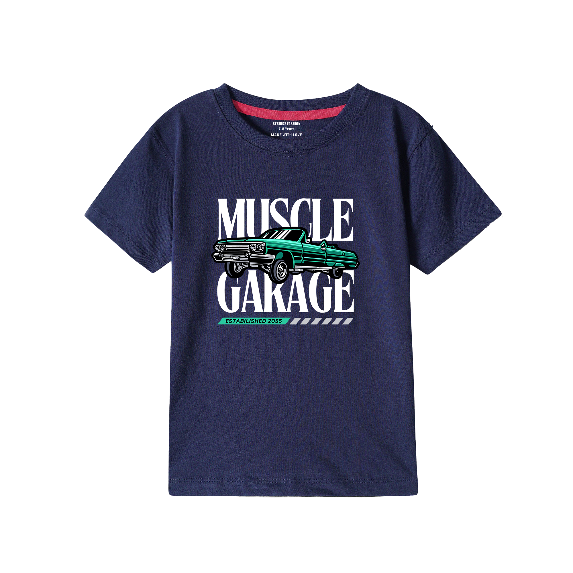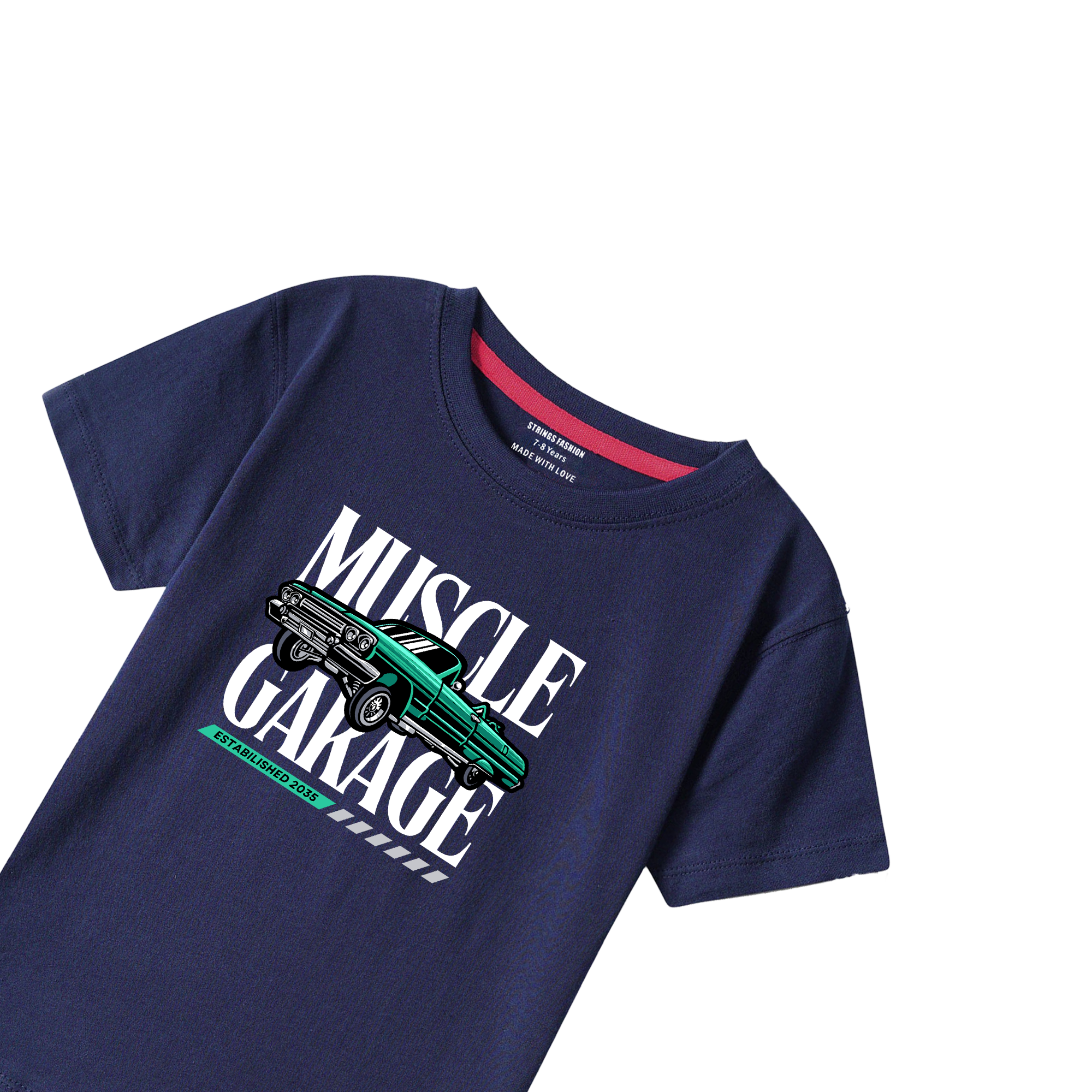 This Muscle Garage navy printed boys T-shirt combines comfort and style with its soft fabric and durable print. Designed for active boys, it offers a perfect fit that supports movement while maintaining a sharp, sporty look. Ideal for casual wear, this T-shirt ensures lasting quality and easy care.