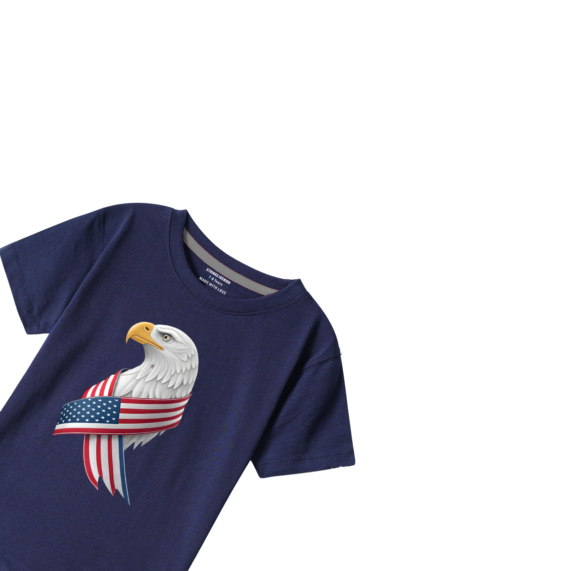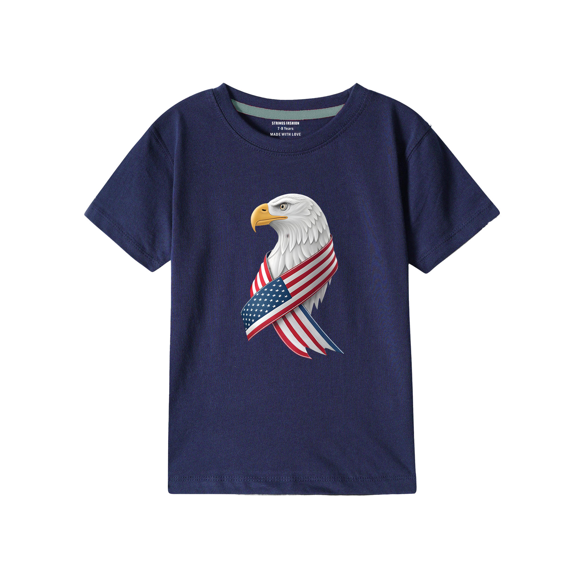 Make a bold statement with this Navy Graphics USA Flag Eagle T-Shirt, designed for kids who celebrate patriotic style. Crafted from 100% pure cotton, this comfortable tee features striking eagle and flag graphics that capture attention and spark conversation. The breathable fabric keeps kids cool during play and everyday wear, while the durable construction withstands frequent washing. Machine wash at 30°C with gentle care for long-lasting quality. Versatile enough to pair with any casual outfit, this tee is a wardrobe essential. Shop with confidence—our 7-day easy return policy ensures the perfect fit for your child.