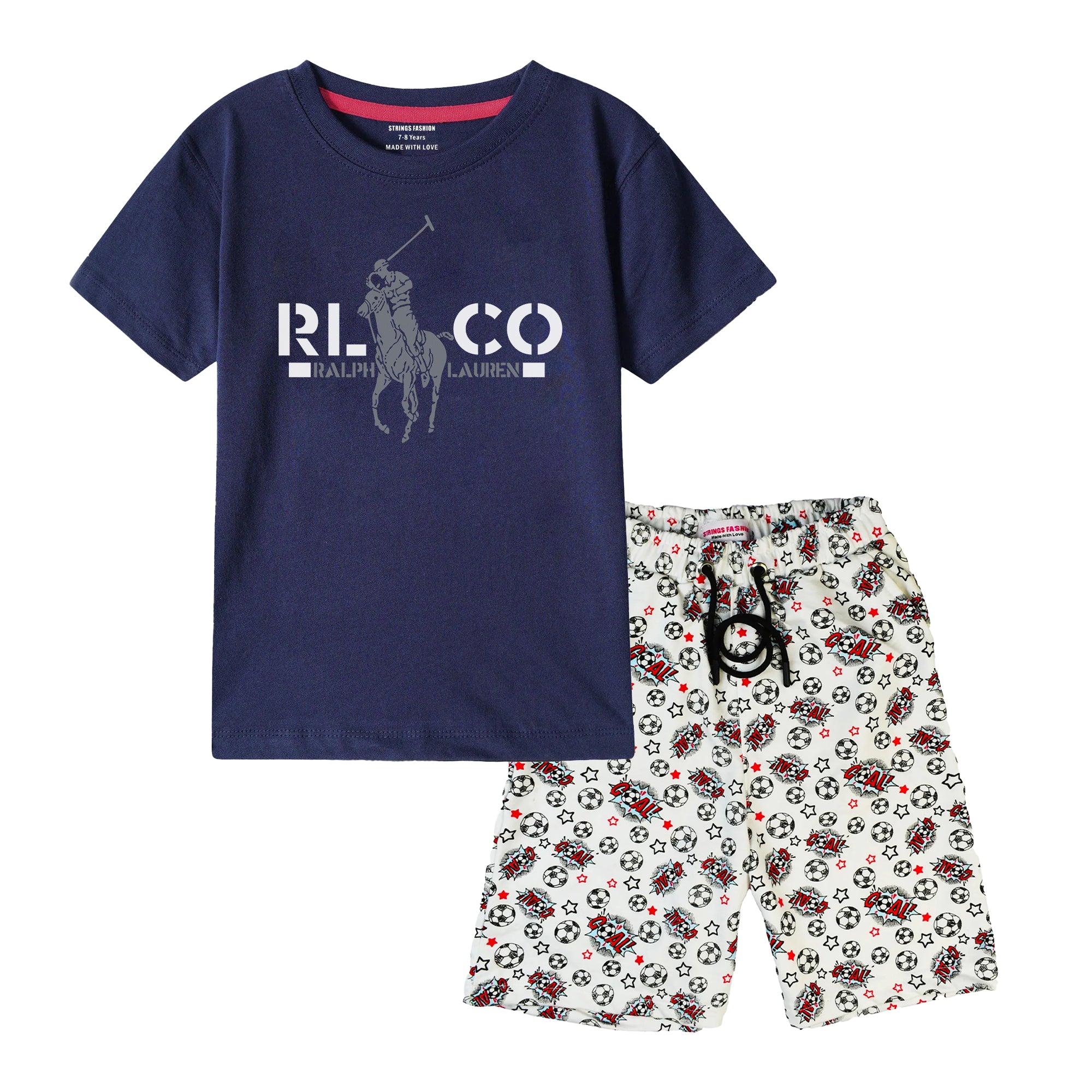 POLO BOYS SHORT SLEEVE NAVY T.SHIRT & FOOTBALL PRINTED SHORTS (SF-28414)