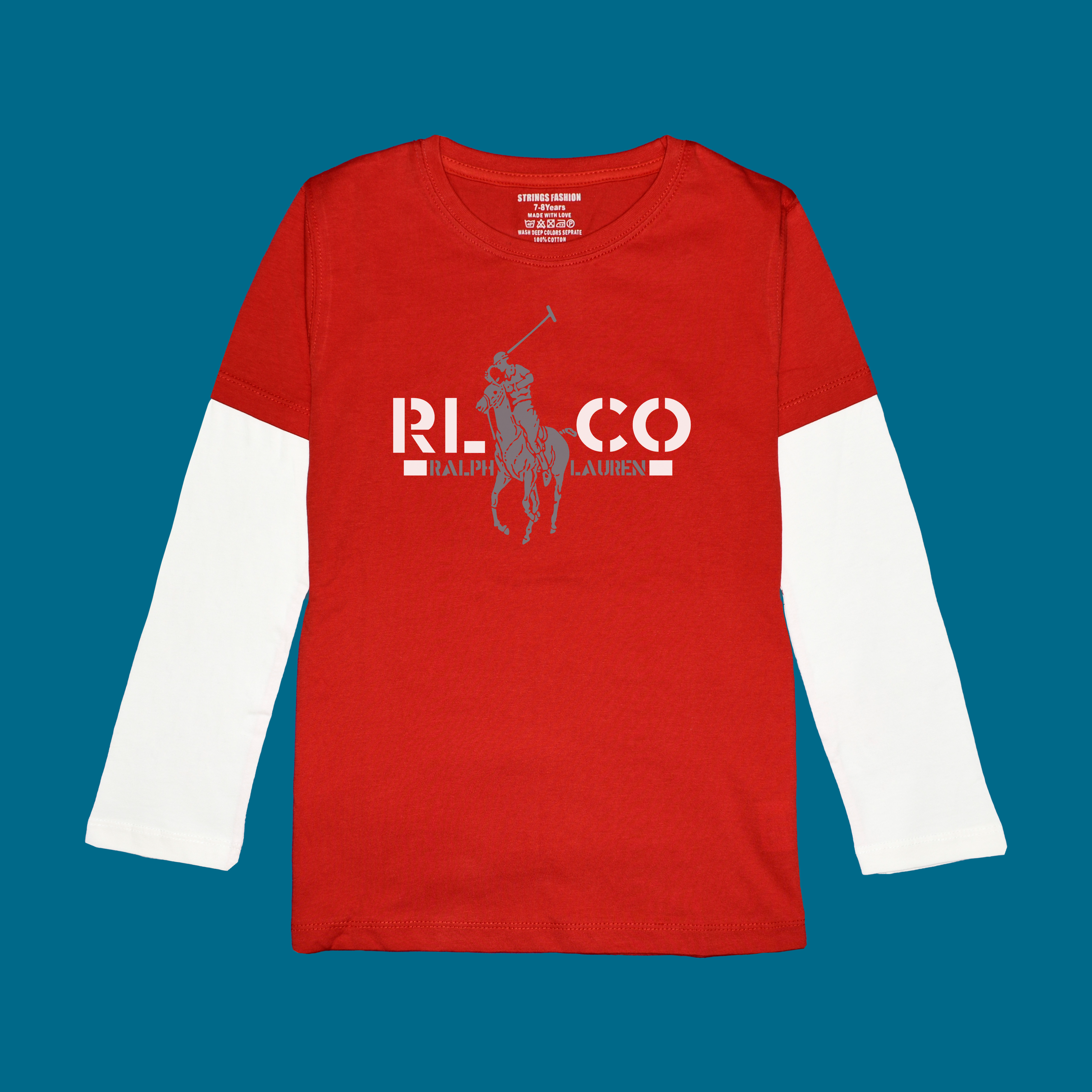 POLO PRINTED RED-WHITE BOYS LONG SLEEVE T.SHIRT