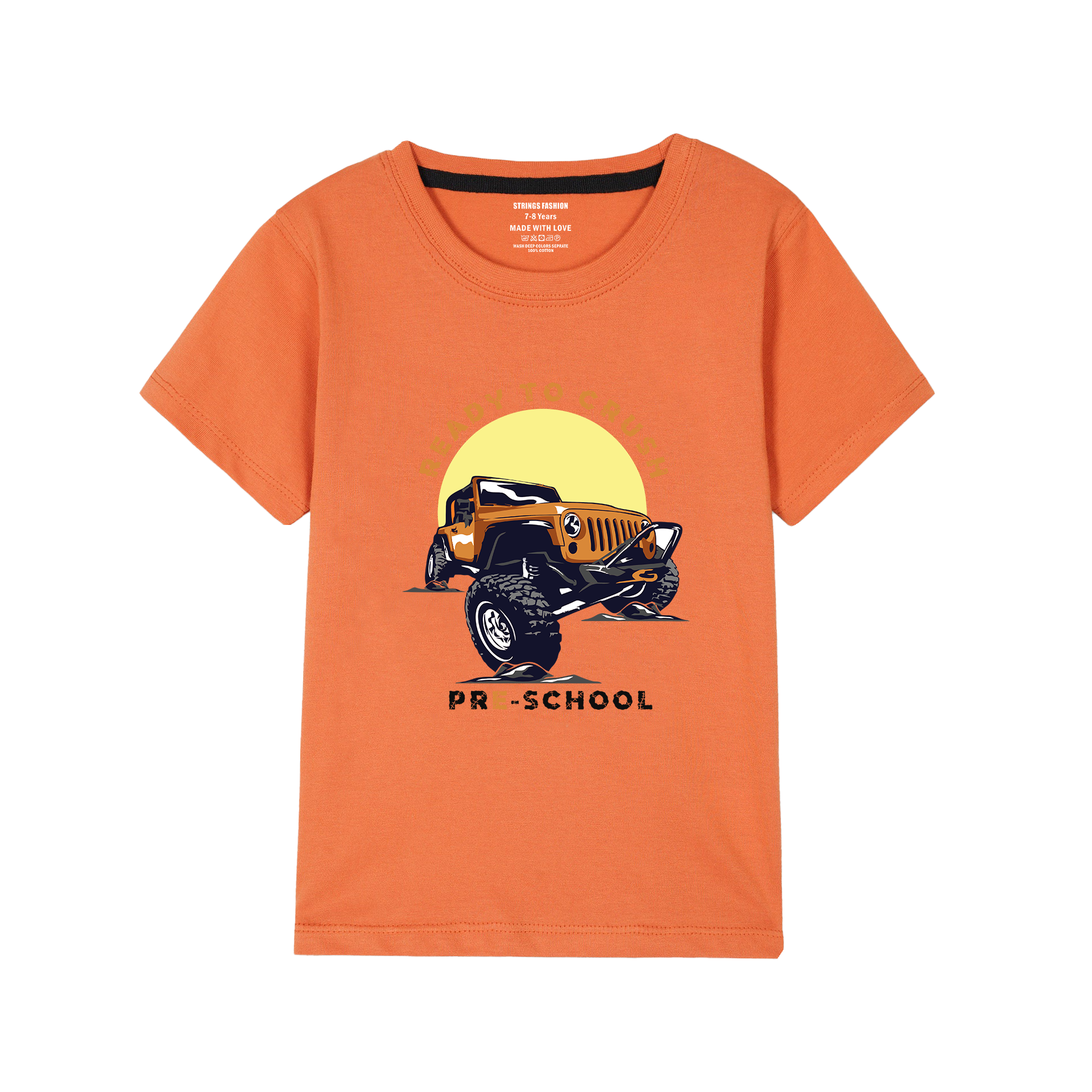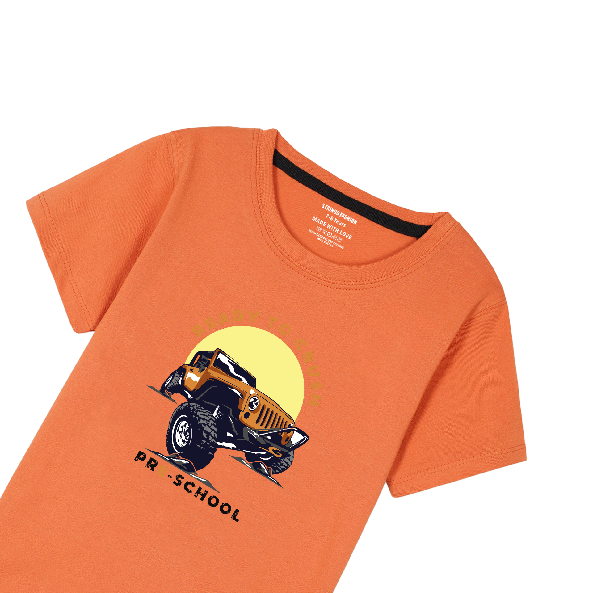 This vibrant orange boys' T-shirt features a bold "Ready to Crush" print, combining style with comfort. Crafted from soft, breathable fabric, it ensures all-day wearability for active kids. Its bright color and dynamic design make it a standout choice for casual outings and playtime. Durable stitching guarantees long-lasting use, making it a practical addition to any young wardrobe.