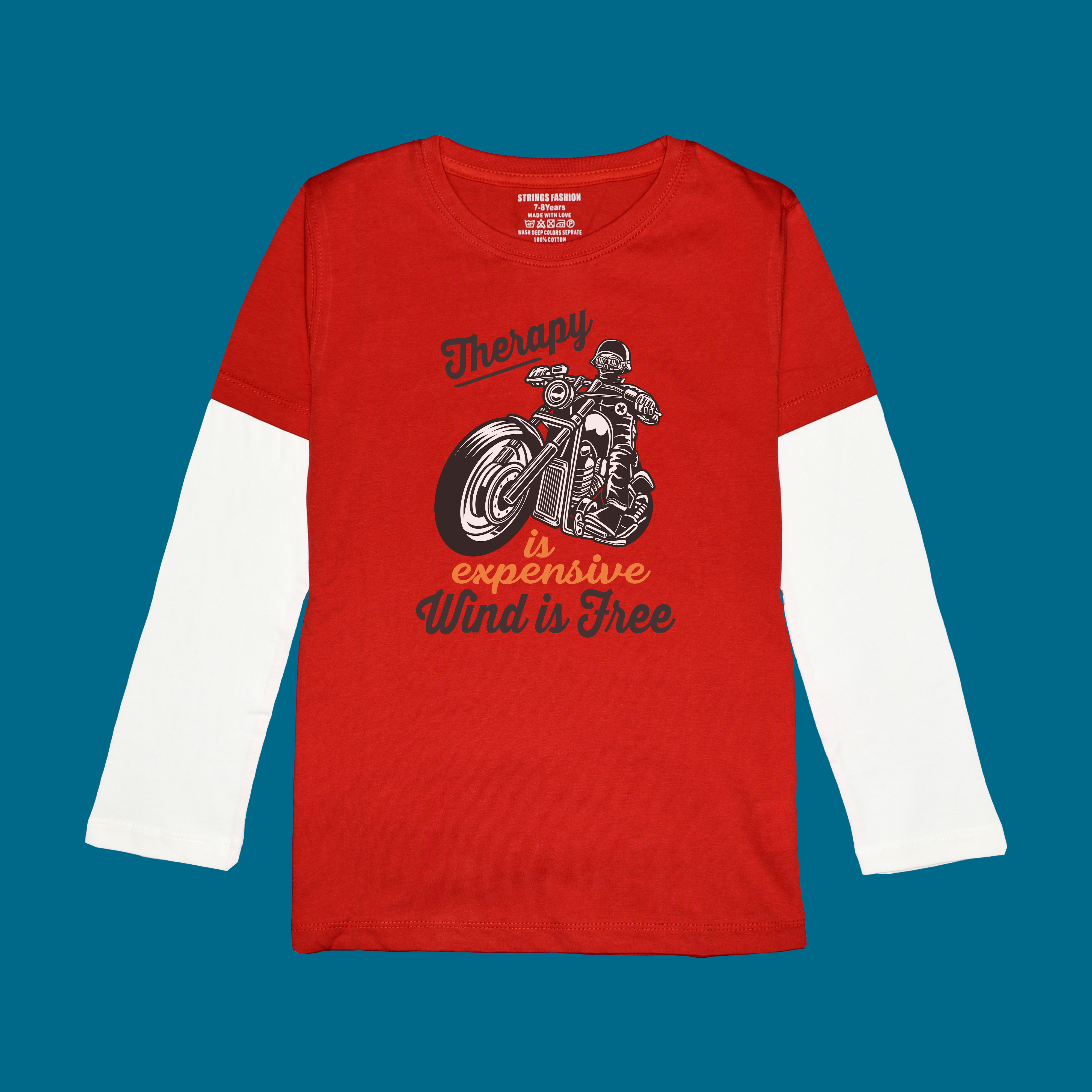 THERAPY BIKE PRINTED RED-WHITE BOYS LONG SLEEVE T.SHIRT