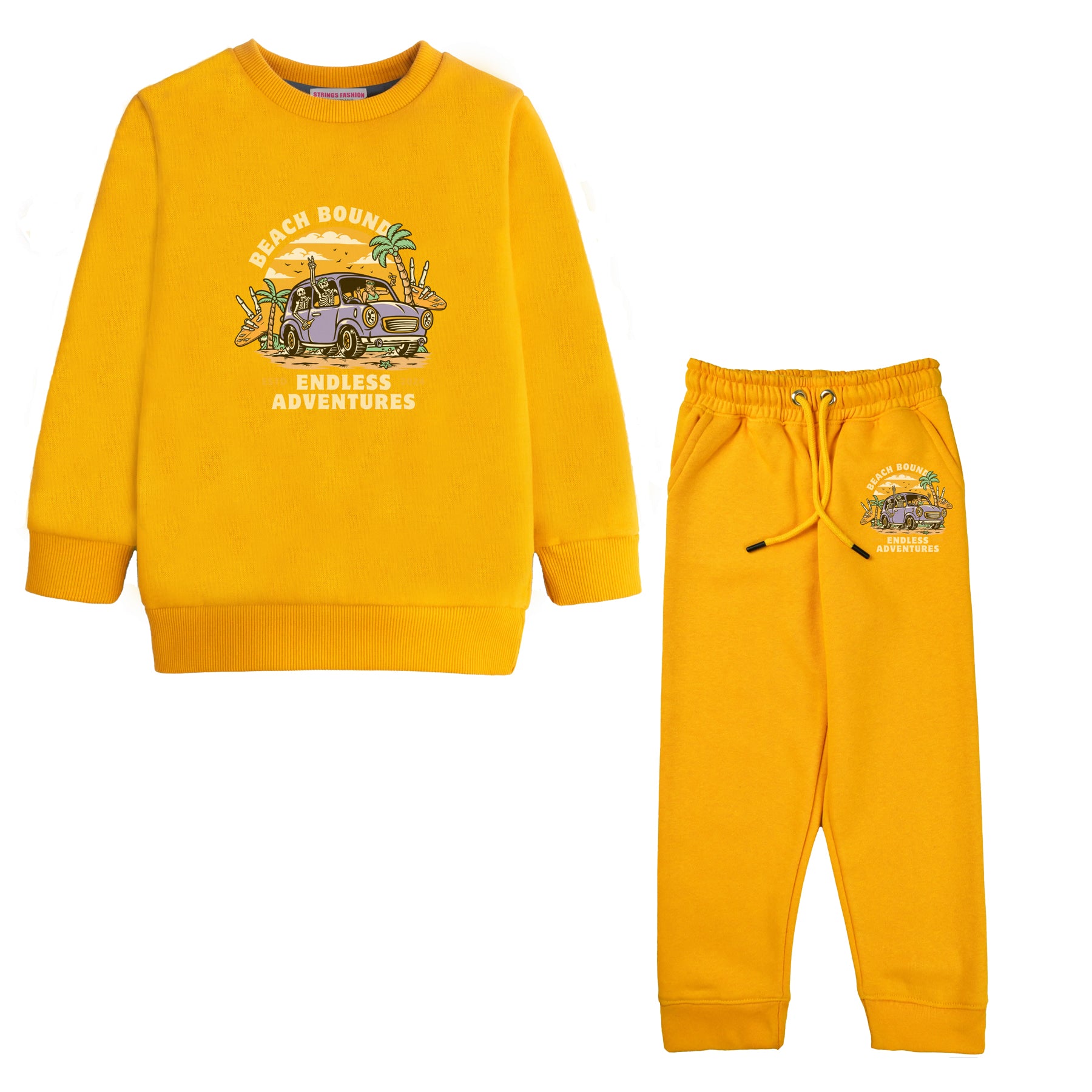 This junior fleece track suit combines vibrant yellow header color with soft, warm fabric, perfect for active boys. Designed for comfort and flexibility, it supports outdoor play while providing insulation on cooler days. Durable stitching and quality materials ensure long-lasting wear for everyday adventures. Ideal for casual outings or sports activities, this track suit offers both style and practical warmth.